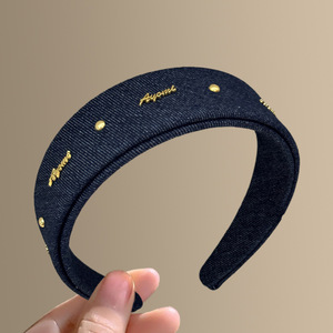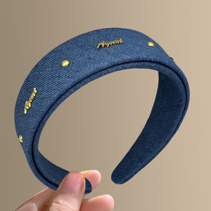 苏黎假期~博主风格牛仔字母发箍女韩版气质ins风高颅顶头箍盘发器