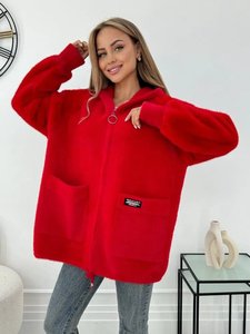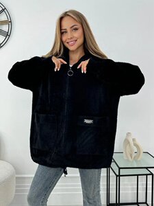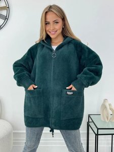 跨境欧美女装新款拼色仿貂毛连帽开衫秋冬保暖外套