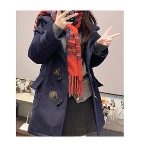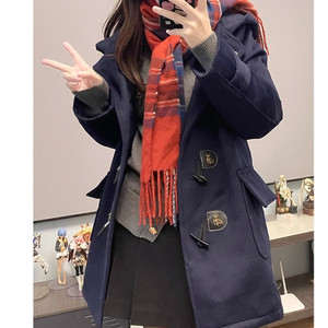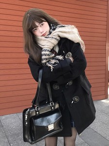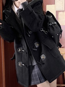 (450克)学院风牛角扣大衣外套秋冬黑色女毛呢jk制服中长款大衣