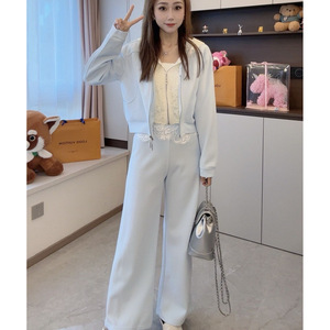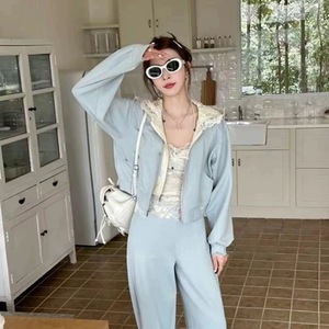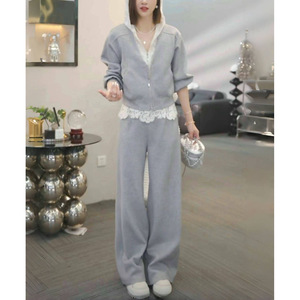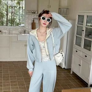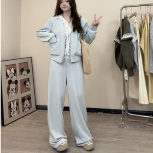 2025春秋薄款新款卫衣外套+裤子休闲设计师款套装灰色两件套套装