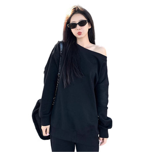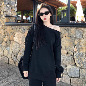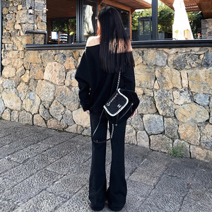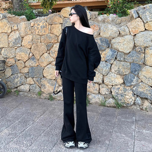 孕妇慵懒风宽松一字肩卫衣+休闲喇叭裤时尚套装女
