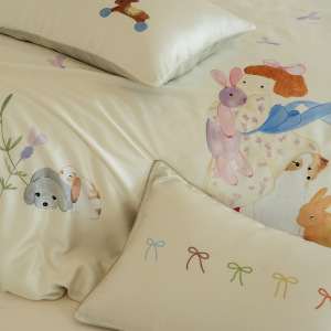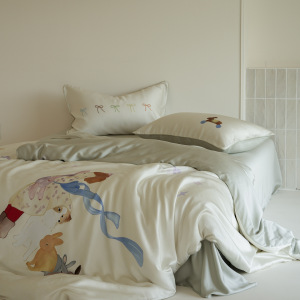 韩系卡通少女心60支兰精天丝四件套夏季凉感丝滑裸睡儿童被套床品
