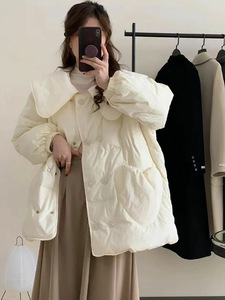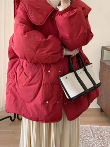 圣诞红大翻领羽绒服女2025冬季甜美爱心压胶保暖小个子白鸭绒外套
