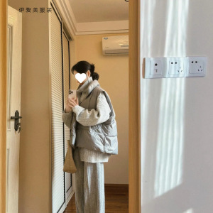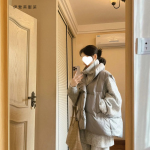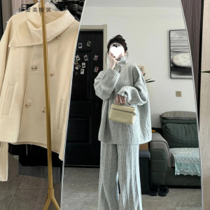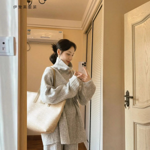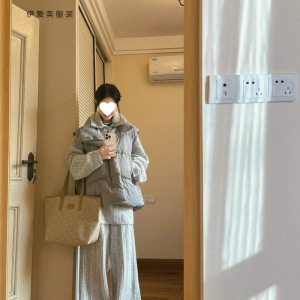 三件套装立领针织套头长袖毛衣女秋冬慵懒风宽松棉衣棉服马甲