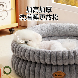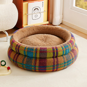 跨境热销新款宠物窝保暖猫窝狗床圆形加厚冬季保暖条纹猫狗宠物窝