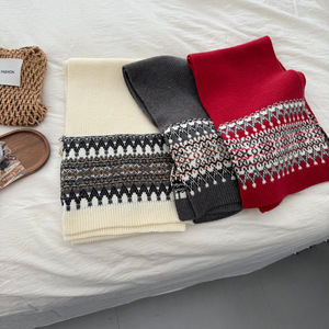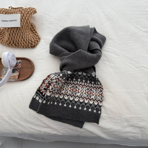 新中式提花针织围巾女冬季氛围感保暖防寒仿羊绒ins小众围脖男