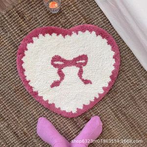 跨境temu热销爱心蝴蝶结地毯植绒客厅沙发茶几装饰地毯浴室防滑