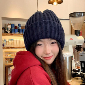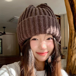 毛线帽女大头围显脸小宽松秋冬基础款纯色针织帽韩版学生套头冷帽