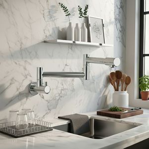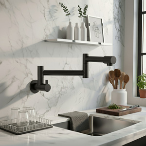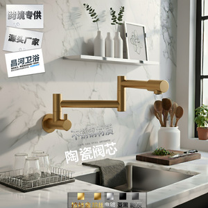 跨境外贸入墙式龙头厨房不锈钢挂壁式加长单冷出水折叠龙头