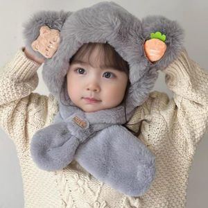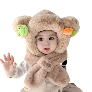冬季儿童帽子围巾一体帽加绒加厚卡通两件套可爱超萌男女童护耳帽