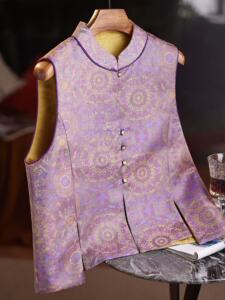 双面双穿新中式立领宋锦织锦提花盘扣背心马甲气质坎肩复古上衣