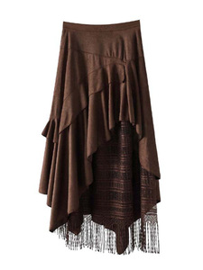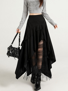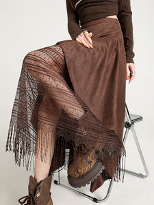 波西米亚风不规则流苏半身裙女2025秋季新款气质百搭A字长裙A7165