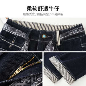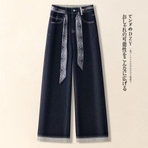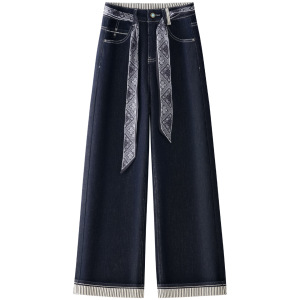版型好看的牛仔裤阔腿裤女秋季2025丝巾腰带翻边复古窄版直筒裤