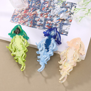 海洋系列可爱醋酸拼接发夹甜美仿真水母抓夹半扎发盘发马尾夹头饰