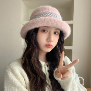 日系休闲提花保暖盆帽甜美百搭卷檐帽子女秋冬季时尚显脸小毛线帽