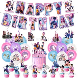 现货秒发猎魔女团生日派对装饰拉旗蛋糕插背景气球套装爆款存货