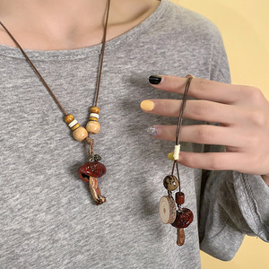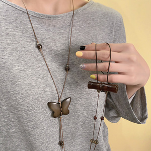 复古森系长款木质吊坠项链女小众高级感毛衣链民族风衣服装饰配饰
