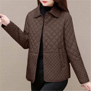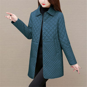 中长款大码高档菱形格子夹棉薄外套女士春秋新款休闲轻薄小棉袄女