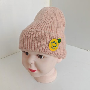 新款跨境儿童帽韩版男童女童笑脸护耳针织套头帽子厂家直销
