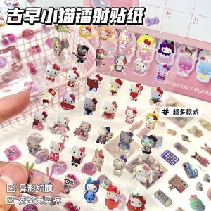 镭射贴纸-古早小猫【5包/50张】+贴纸收纳册+镊子