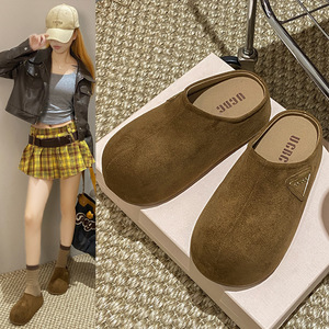 厚底包头半拖鞋女内增高单鞋秋季新款网红大头一脚蹬懒人鞋休闲鞋