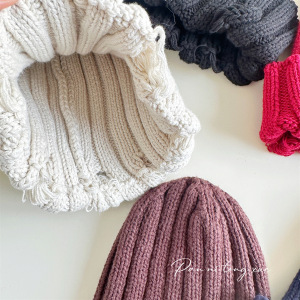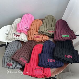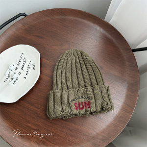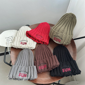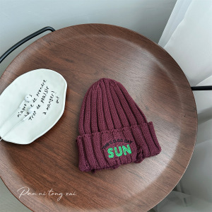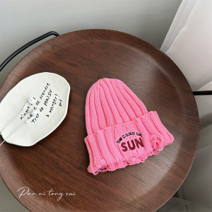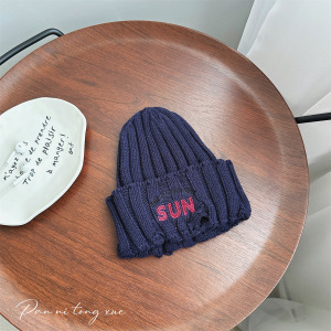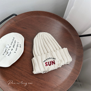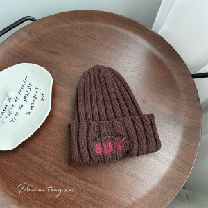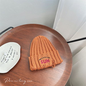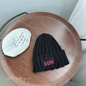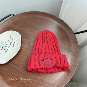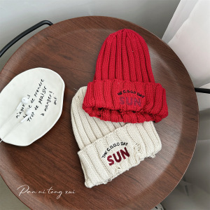 ins韩系儿童帽刺绣秋冬季保暖针织套头帽男女宝宝防风护耳毛线帽