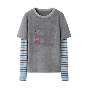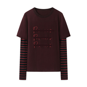 2025秋季新款女装休闲廓形假两件圆领字母印花长袖T恤R530117607B
