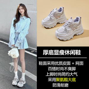 秋季老爹鞋2025新款水钻休闲鞋8cm增高厚底运动鞋小个子百搭女鞋