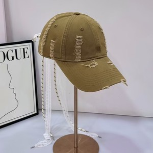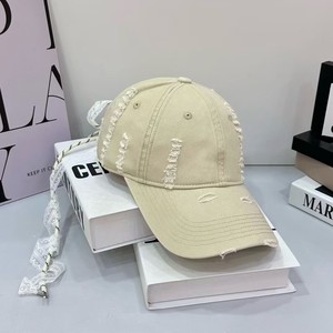 日系烂边做旧蝴蝶结绑带棒球帽女秋冬复古百搭街头软顶款鸭舌帽潮