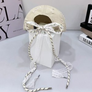 做旧蝴蝶结绑带棒球帽-米色