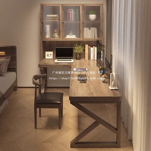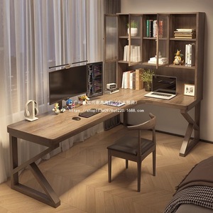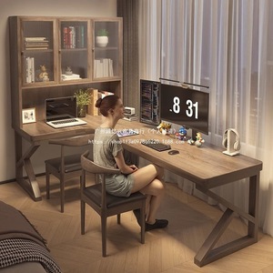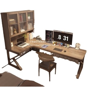 严选风实木电脑桌转角书桌书柜一体儿童学习写字工作台l型办公桌