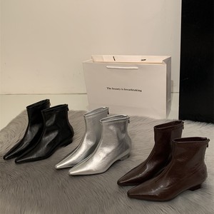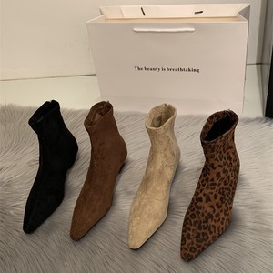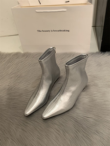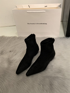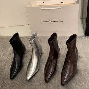 粗跟瘦瘦靴女时尚欧美风2025新款工作中跟短靴软皮网红尖头马丁靴