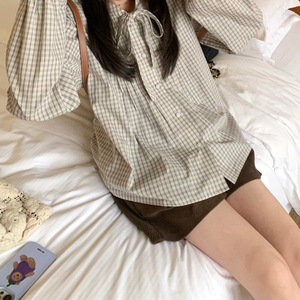 2025年秋季新款时尚黑白格飘带叠穿衬衫+百搭针织马甲无袖上衣