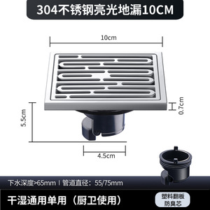 防臭304不锈钢地漏卫生间专用淋浴房长方形防臭地漏跨境直销工厂