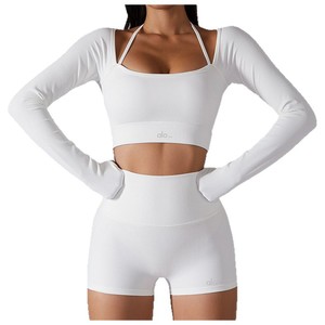 ALOsco春夏新款运动女上衣女螺纹带速干健身服修身紧身长袖瑜伽服