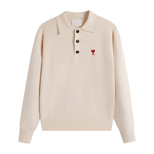 跨境ami针织衫polo领男女情侣25年秋冬新款翻领小爱心刺绣羊毛衣
