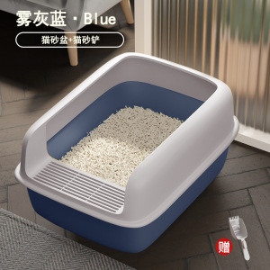 雾灰蓝【高围栏/大空间/防外溅】送猫砂铲