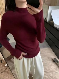 毛线混纺打底衫秋冬内搭简约半高领长袖上衣针织打底衫 女