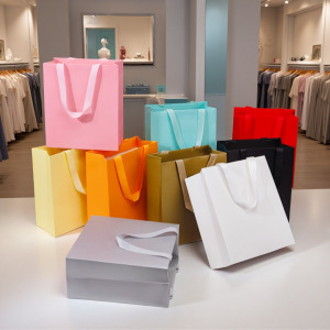 现货包邮纯色手提纸袋无腰线多巴胺配色鞋服购物袋印logo礼品袋