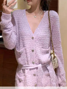 设计师款"爱丁堡秋天"米杏色小香风毛衣外套女秋百搭针织开衫