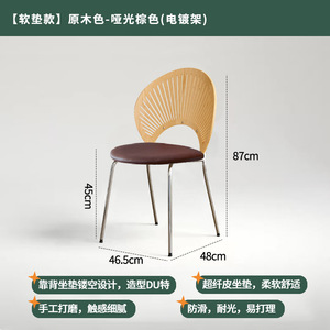 北欧实木贝壳椅餐椅家用简约复古太阳椅子中古茶桌木椅轻奢餐桌椅