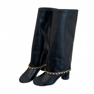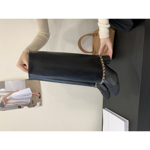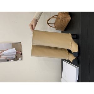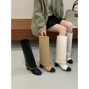 小香风圆头拼色骑士靴2025年秋季新款气质粗跟高筒裤管靴女
