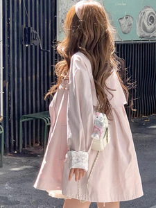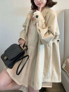 【秋日慕斯】袖口蕾丝拼接设计风衣外套女秋宽松上衣
