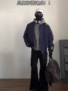 美式高街飞行员夹克秋冬季外套男女字母刺绣设计百搭廓形棒球服男