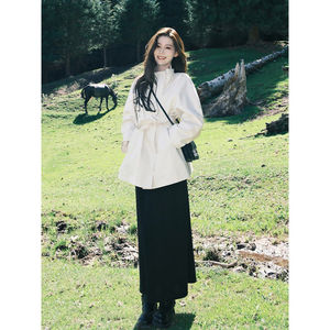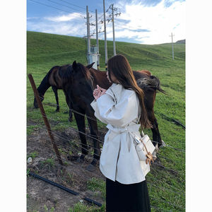 白色相簿风衣气质外套女中短款长款英伦上衣2025立领新款