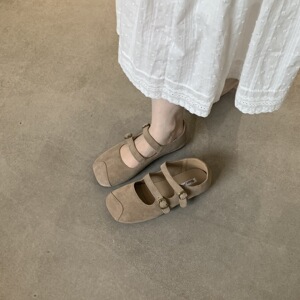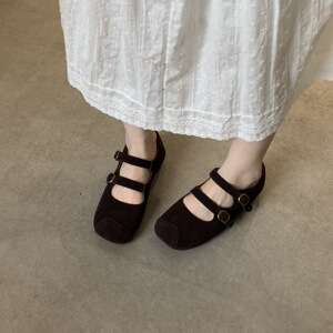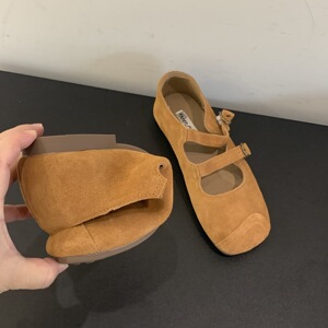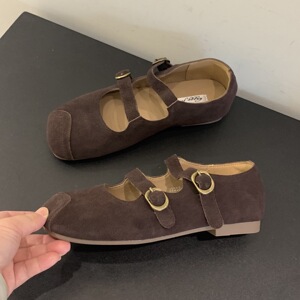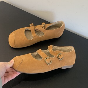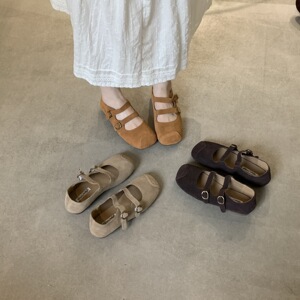 复古一字扣玛丽珍单鞋女2025秋季新款平底软底真皮勃肯复古奶奶鞋