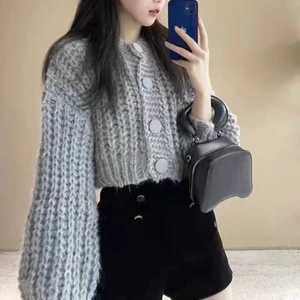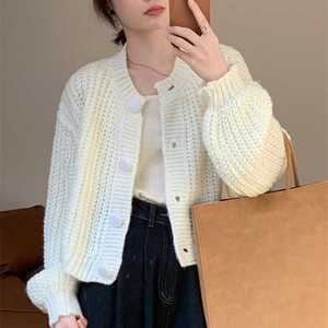 宽松毛衣外套女装2025秋冬季新款短款慵懒风复古纯色针织开衫上衣