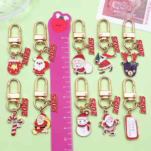 2025新款圣诞节钥匙扣麋鹿老人滴油合金吊坠挂件女生包包耳机配饰