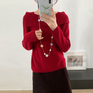 2025早秋新款别致羊毛衫舒适甜美气质露肩长袖针织衫女一字领上衣