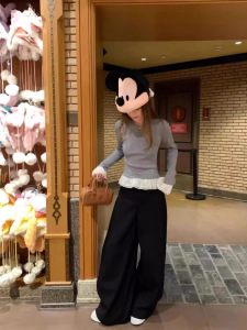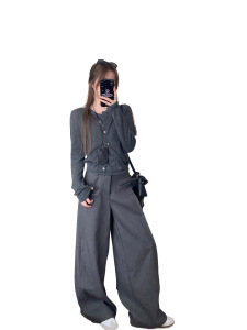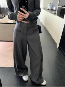 慵懒风垂感灰色西装裤休闲裤女春季百搭高腰阔腿裤直筒长裤拖地裤